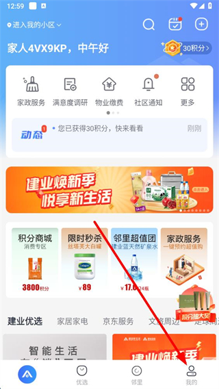1、打開建業(yè)APP,點擊右下角我的進入個人頁面。