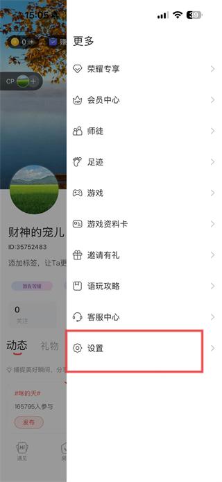 2、在功能菜單中點擊設(shè)置,進(jìn)入設(shè)置頁面。