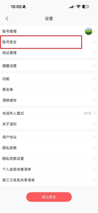 3、在設(shè)置頁面點擊賬號安全,進(jìn)入賬號安全頁面。