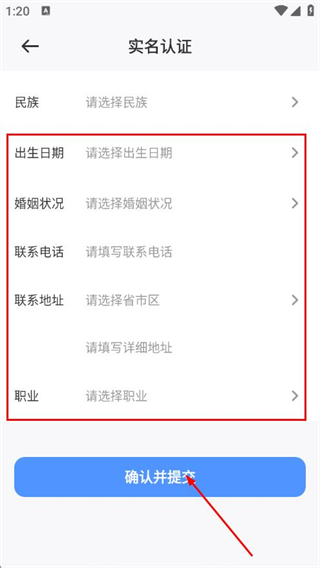 4、繼續(xù)填寫信息后,點(diǎn)擊確認(rèn)并提交,完成實(shí)名認(rèn)證。