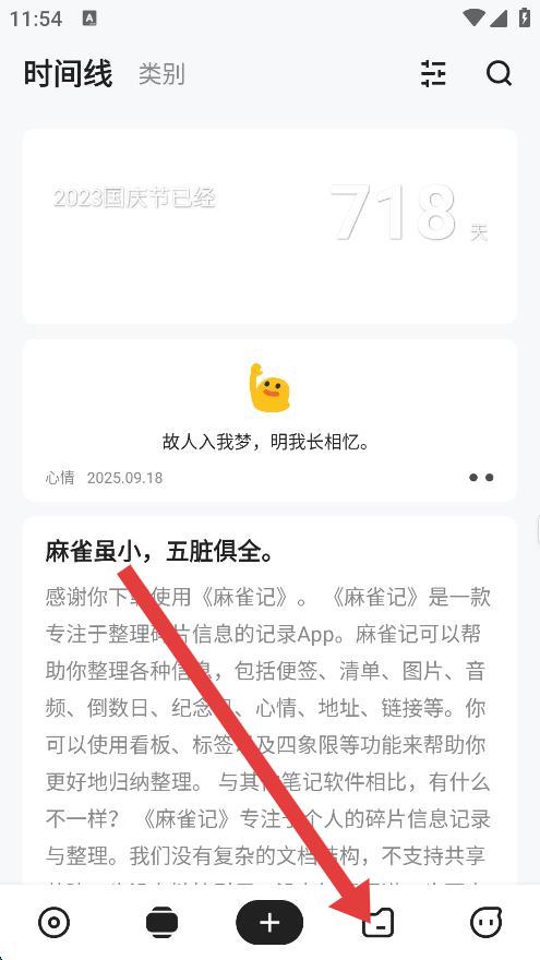 1、打開麻雀筆記app,進入主界面,點擊底部導航欄中看板形狀的圖標,進入看板頁面。