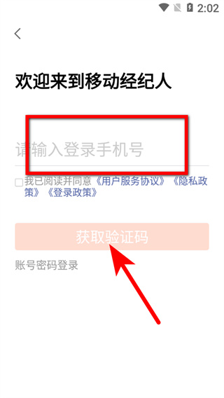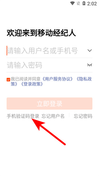 1、在移動(dòng)經(jīng)紀(jì)人登錄頁(yè)面,點(diǎn)擊手機(jī)驗(yàn)證碼登錄選項(xiàng),進(jìn)入手機(jī)號(hào)填寫(xiě)頁(yè)面。