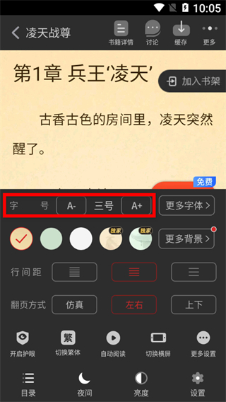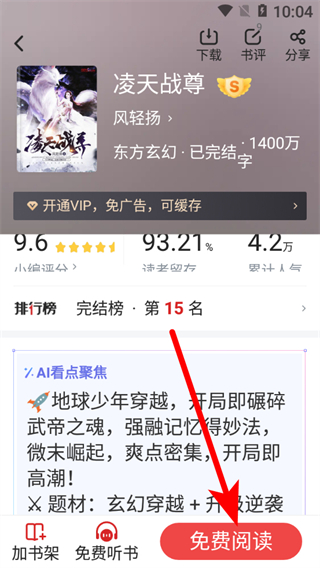 2、在小說書籍詳情頁點(diǎn)擊免費(fèi)閱讀,進(jìn)入閱讀界面。