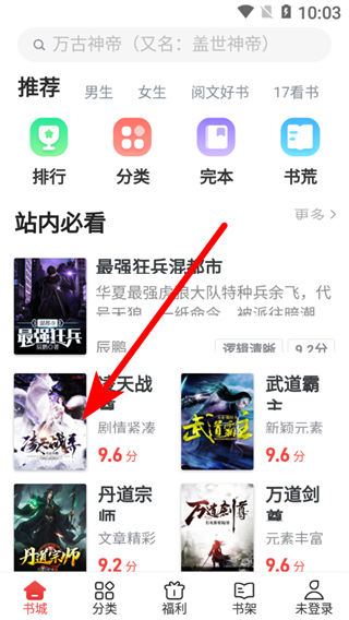 1、在追書神器書城頁面,選擇要閱讀的書籍,點(diǎn)擊進(jìn)入書籍詳情界面。