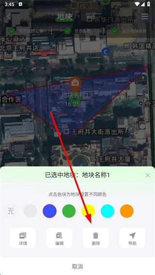 4、在彈出的選項中,點擊刪除按鈕即可刪除該地塊。