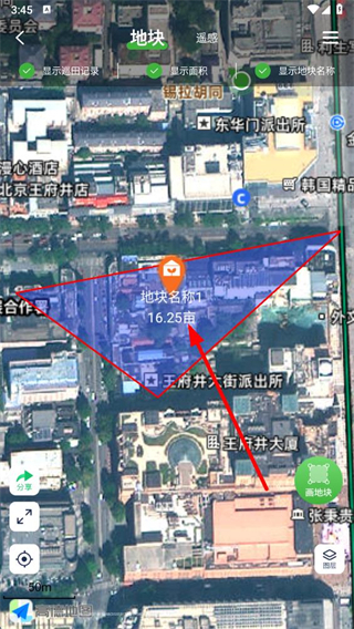 3、在地塊的衛(wèi)星地圖頁面,點擊地塊區(qū)域,彈出操作選項。