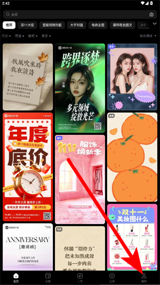 1、打開美圖設計室APP,點擊右下角我的,進入個人頁面。