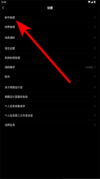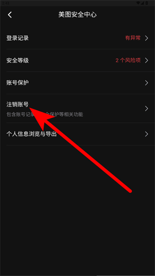 進入美圖安全中心頁面后點擊注銷賬號,按照提示完成美圖設計室賬號的注銷操作。