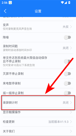 3、在設(shè)置頁面找到錄屏倒計時選項并點擊,彈出倒計時時間選擇框。