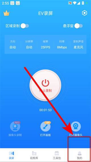 1、打開EV錄屏APP,點擊右下角我的,進入個人中心頁面。