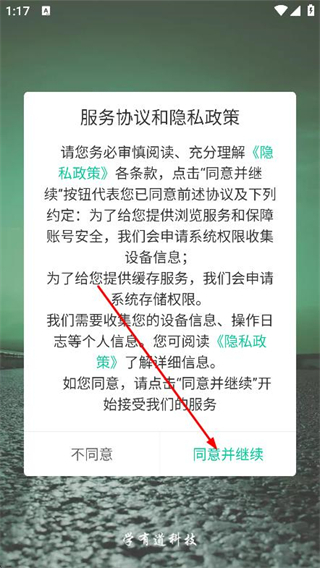 1、打開樂學(xué)有道APP,在彈出的提示框中點(diǎn)擊同意并繼續(xù)。