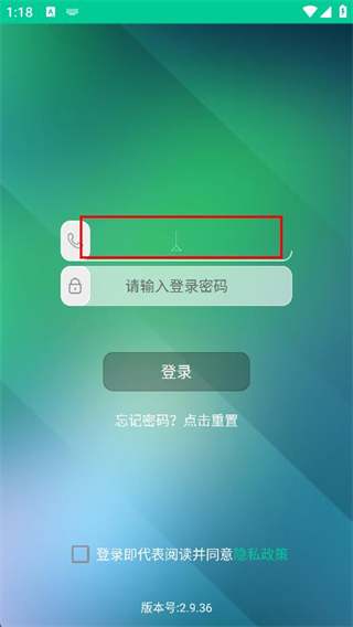 2、進(jìn)入登錄頁面后,在輸入框內(nèi),輸入需要登錄的手機(jī)號。