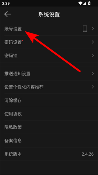 3、在系統(tǒng)設(shè)置頁面點擊賬號設(shè)置,進入賬號設(shè)置頁面。