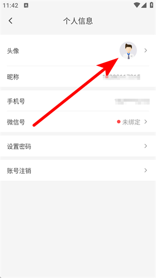 3、在個人信息的頁面,我們需要點擊頭像的這個選項。