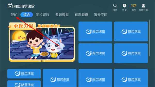 1、打開同步小學(xué)課堂,點(diǎn)擊頂部導(dǎo)航欄我的選項(xiàng)。