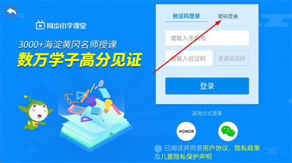 3、在登錄頁面中,選擇并點(diǎn)擊上方的密碼登錄選項(xiàng)。