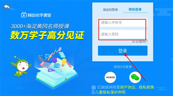 4、填寫手機(jī)號和密碼,點(diǎn)擊登錄即可完成賬號登錄。