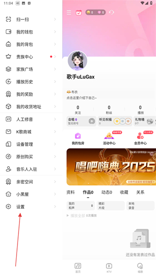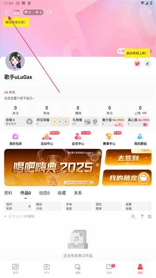 1、啟動(dòng)唱吧k歌的應(yīng)用,在我的頁(yè)面內(nèi)點(diǎn)擊左上的圖標(biāo)。
