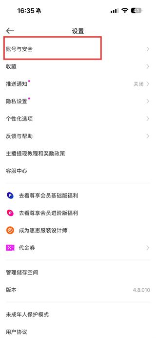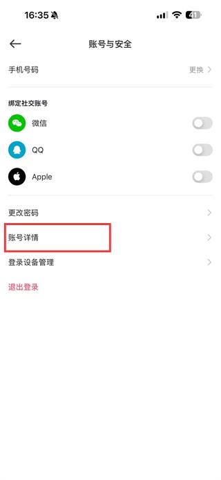 3、進入賬號與安全頁面后,點擊賬號詳情選項。