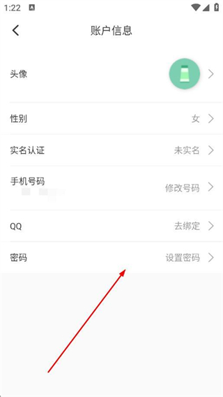 4、在賬戶信息頁面,點擊密碼,進入設置密碼頁面。