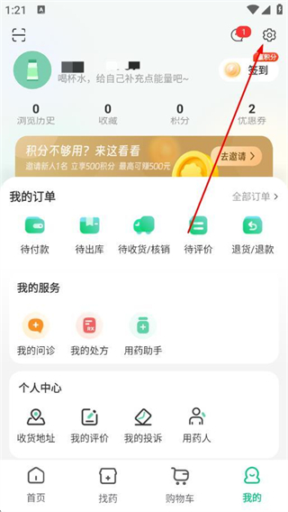 1、打開藥房網商城APP,點擊底部導航欄最右側我的選項,進入個人頁面。