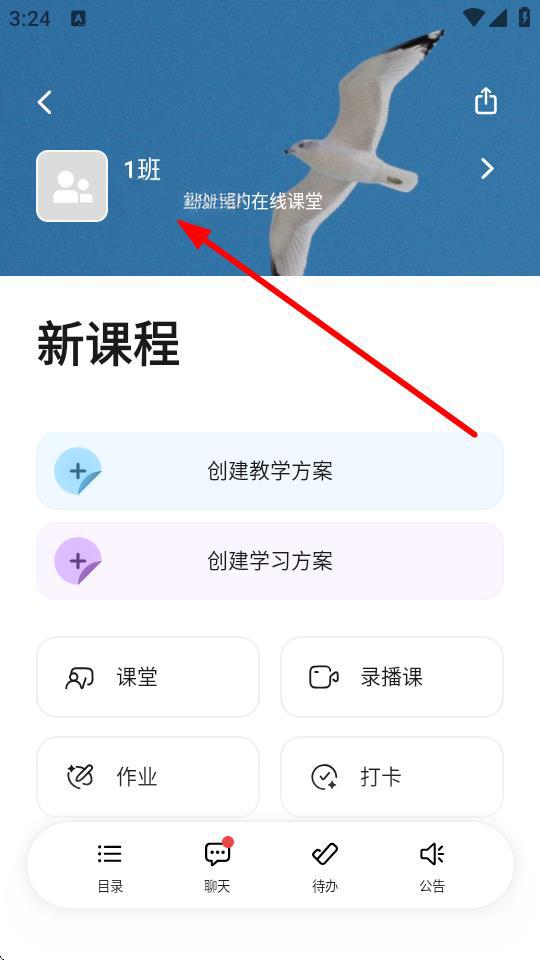 2、在班級(jí)的頁(yè)面,點(diǎn)擊班級(jí)名稱的區(qū)域,進(jìn)入班級(jí)設(shè)置的界面。