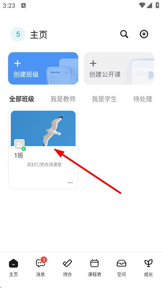 1、在classin的主頁(yè),需要點(diǎn)擊目標(biāo)班級(jí)1班,進(jìn)入班級(jí)的頁(yè)面。