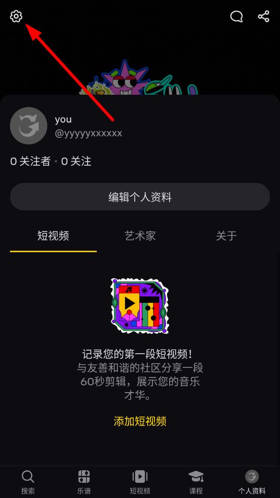 2、在個人資料頁面,點擊左上角齒輪形狀的設置圖標,進入設置界面。