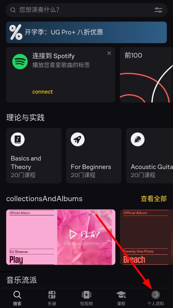 1、打開吉他助手app,點擊底部導航欄最右側(cè)的個人資料圖標。