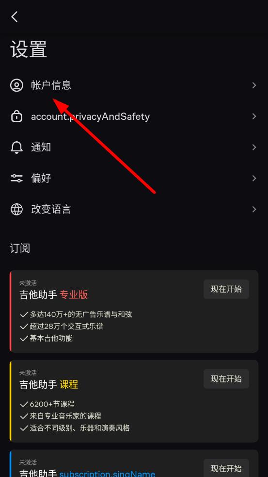 3、在設置界面中,找到并點擊帳戶信息選項,進入帳戶信息頁面。