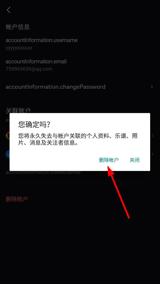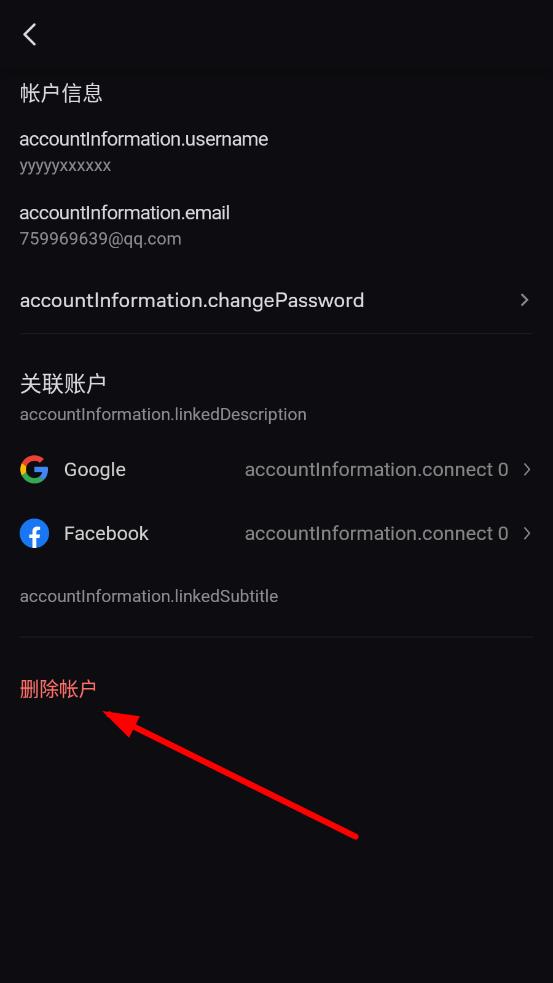 4、在帳戶信息頁面,點擊刪除帳戶選項,進入確認操作。