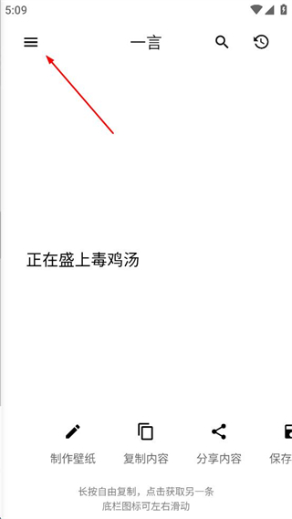 1、在文案類軟件界面,點(diǎn)擊左上角三橫線按鈕。