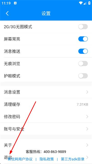 3、下滑點擊退出選項,即可完成退出登錄操作。