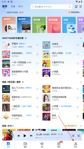 首頁入口提供圖標自定義,要什么功能由你決定;推薦內容根據您的喜好,推薦更符合你口味的歌曲