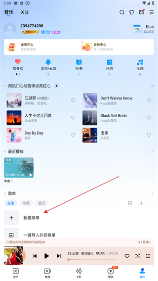 2、進入我的頁面內,點擊歌單下新建歌單的按鈕。
