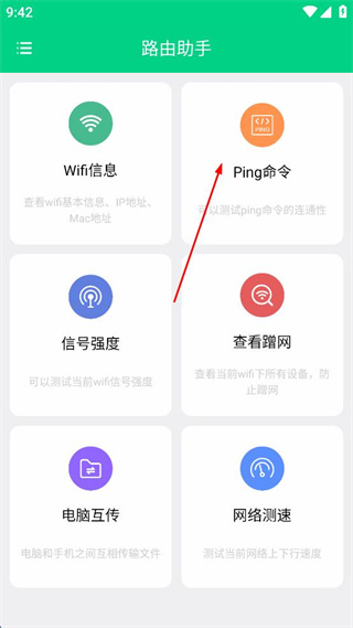 3、返回首頁,點(diǎn)擊Ping命令選項(xiàng)。