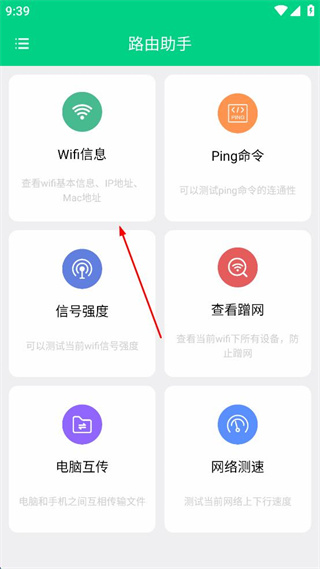 1、打開路由助手,點(diǎn)擊WiFi信息選項(xiàng)。