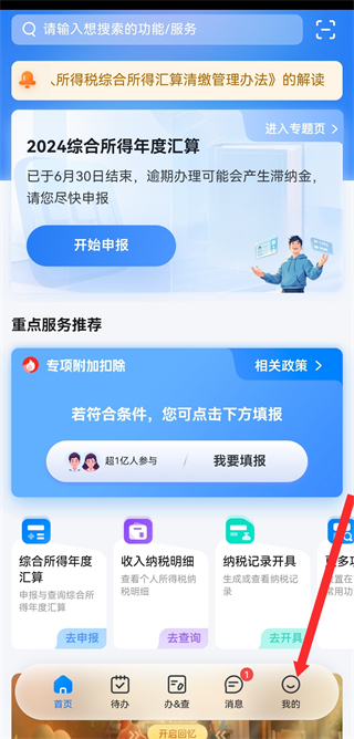 1、打開個人所得稅APP,點擊底部導航欄的我的,進入個人頁面。