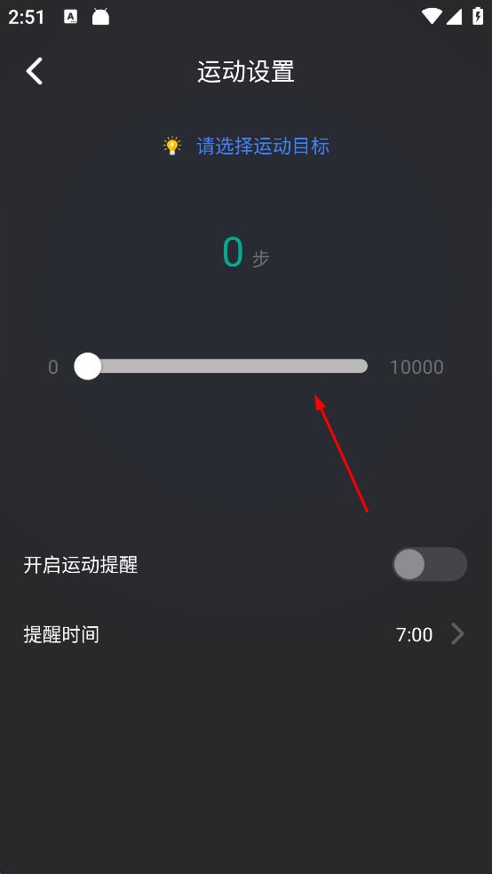 4、在設(shè)置界面中,找到運(yùn)動(dòng)設(shè)置選項(xiàng)并點(diǎn)擊進(jìn)入,然后拖動(dòng)滑塊設(shè)置運(yùn)動(dòng)步數(shù)目標(biāo)等。