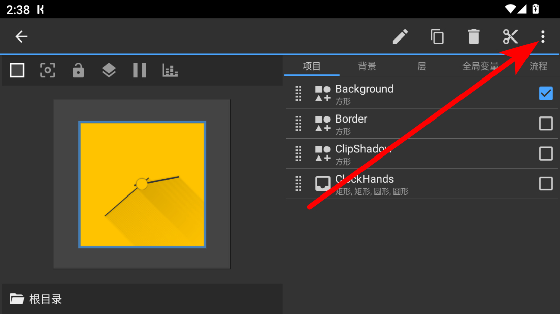 2、在編輯界面,點(diǎn)擊右邊三點(diǎn)選項(xiàng),彈出操作菜單。