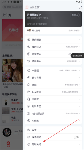 2、在右側(cè)彈出的菜單欄中,找到并點(diǎn)擊定時(shí)關(guān)閉的按鈕。
