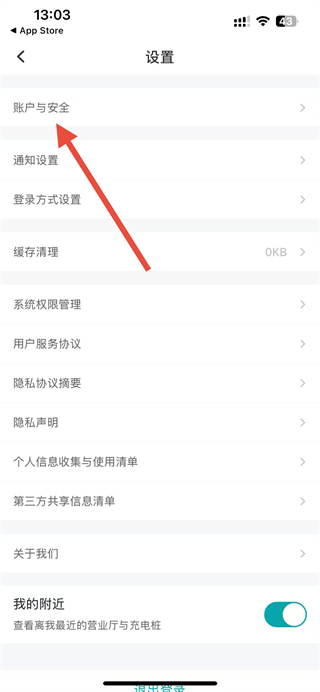 2、在設(shè)置界面中,找到賬戶與安全選項(xiàng)并點(diǎn)擊,進(jìn)入賬戶與安全頁面。
