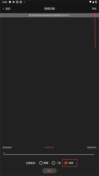 4、進(jìn)入壓縮的頁面內(nèi),選擇清晰度后再點(diǎn)擊導(dǎo)出即可完成。