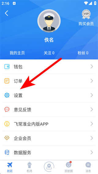 1、打開飛常準(zhǔn)APP,點(diǎn)擊左上角的個(gè)人圖標(biāo),進(jìn)入個(gè)人頁(yè)面。