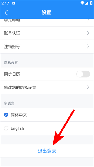 3、在設(shè)置頁(yè)面中,點(diǎn)擊退出登錄,即可完成退出登錄操作。