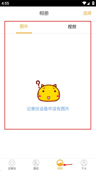 4、在游記界面點(diǎn)擊相冊(cè)選項(xiàng),進(jìn)入相冊(cè)界面。