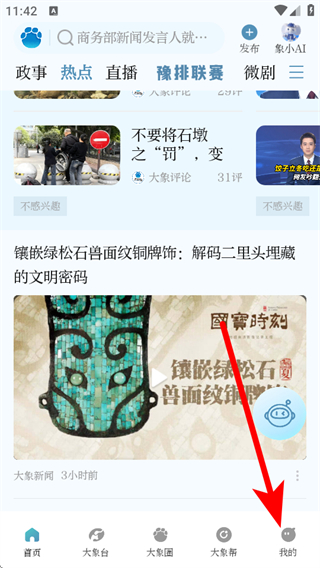 1、在大象新聞首頁,點(diǎn)擊右下角我的選項(xiàng),進(jìn)入個(gè)人界面。