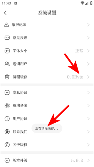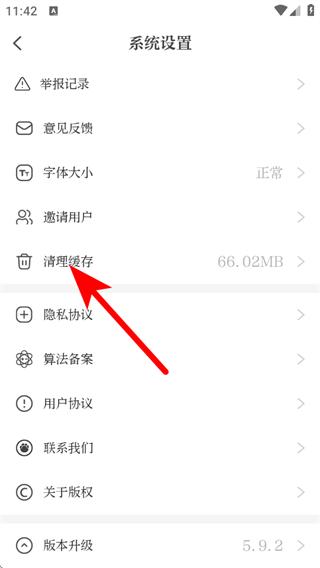 3、在系統(tǒng)設(shè)置頁面,點(diǎn)擊清理緩存選項(xiàng),進(jìn)入緩存清理界面。