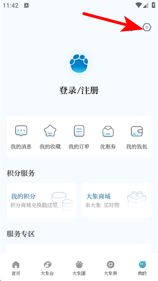 1、打開大象新聞App,點(diǎn)擊我的進(jìn)入個(gè)人頁面,點(diǎn)擊右上角設(shè)置圖標(biāo)。