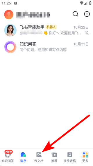 1、在飛書(shū)主界面點(diǎn)擊底部云文檔,進(jìn)入云文檔頁(yè)面。